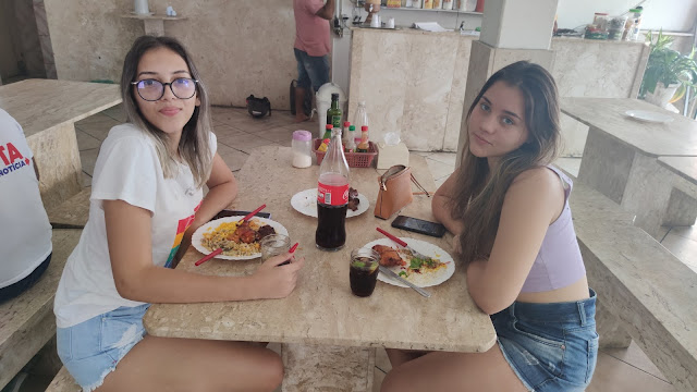As jovens escolheram almoçar no Nilton Bar e Restaurante, que oferece um super churrasco na brasa, com self service sem balança.