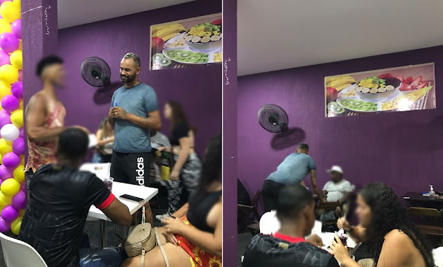 | Goleiro Bruno recepcionou convidados e atendeu servindo lanches na loja de açaí em São Pedro da Aldeia — Foto: g1 |