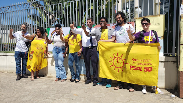 Nesta quinta-feira, 11 de agosto de 2022, integrantes do Psol estiveram realizando um protesto em frente a Câmara de Vereadores, na Avenida João Fraga Brandão em Jacobina, pedindo a cassação do edil Valnei dos Anjos, devido a acusação de agressão física contra a ex servidora pública e jornalista Ellen Mascarenhas.