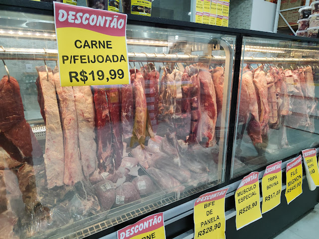 Aqui tem açougue, frutas, verduras, legumes, cereais, bebidas, utensílios para o lar e muito mais para abastecer sua dispensa.