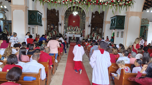 A Filarmônica 2 de Janeiro seguiu tocando cânticos na procissão, no cortejo solene com a presença do padre José Vieira, do prefeito Tiago Dias, da vice prefeita Kátia Alves, além de outras autoridades.
