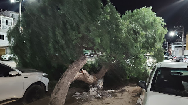 Na noite deste sábado, 27 de julho de 2024, uma árvore desandou e quebrou um poste da rede elétrica na Rua Reinaldo Jacobina Vieira, no Bairro do Peru, em Jacobina.
