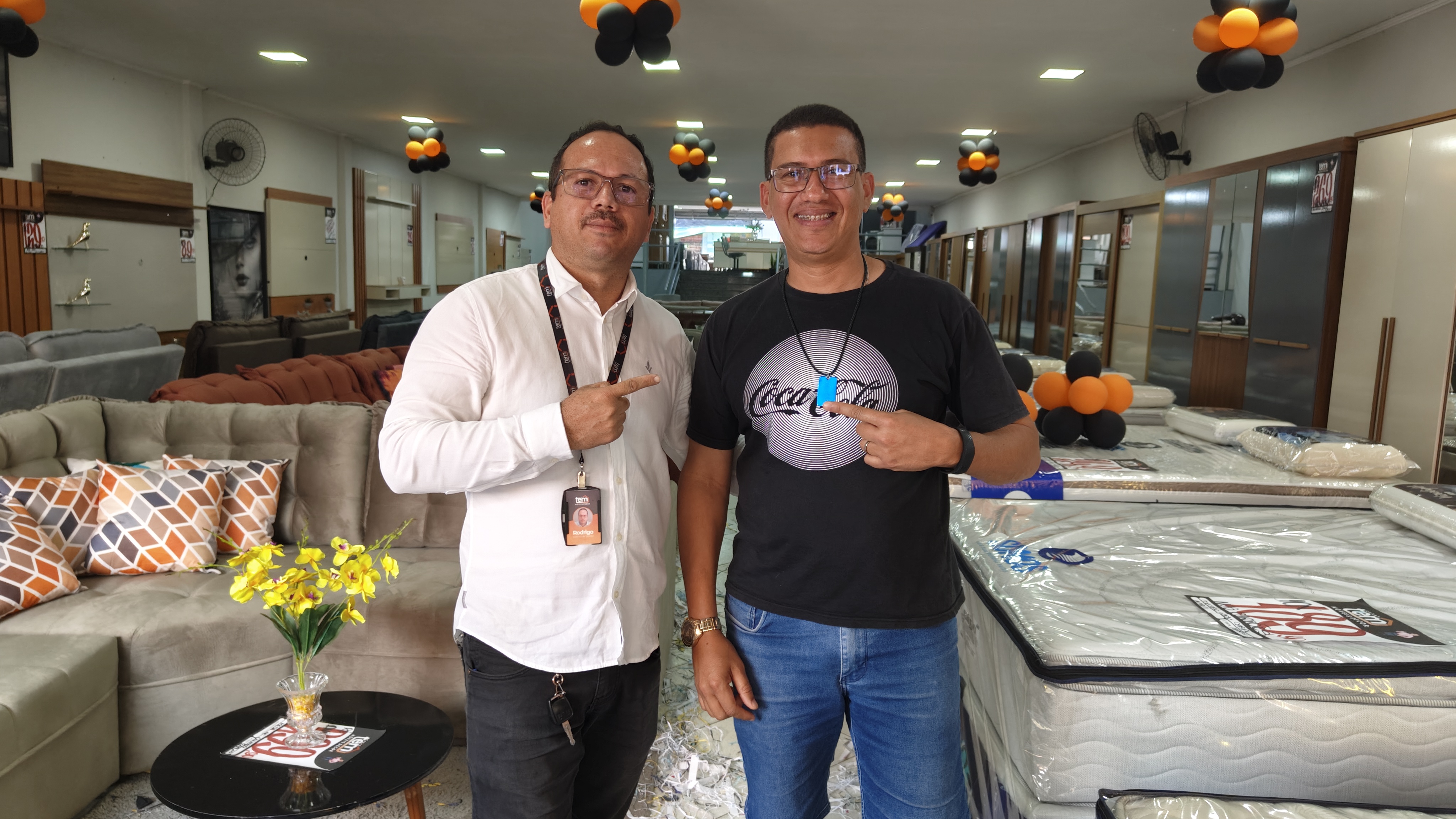 Aqui no Calçadão de Jacobina, clicamos parte da equipe da Casas Tem, atendendo o povo.